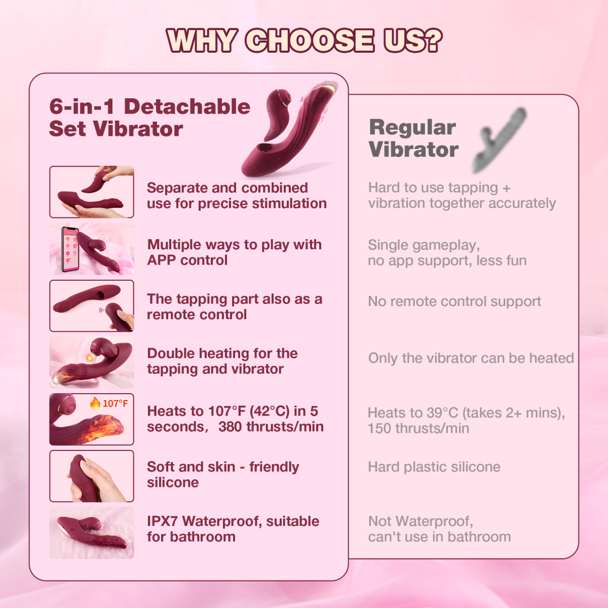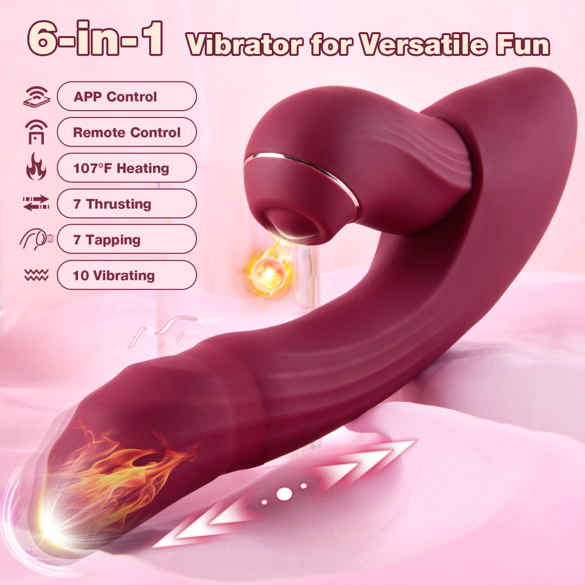 6-in-1 Detachable Vibrator with Tap, Vibrate, Thrust, Heating & APP Control